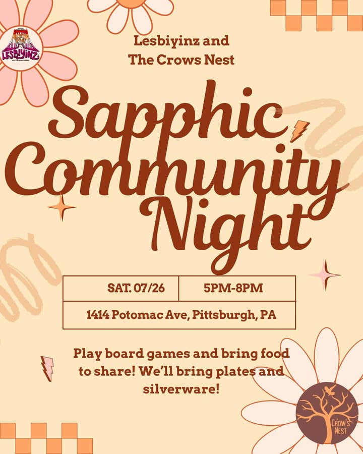 The Crow's Nest is proudly hosting Pittsburgh Lesbiyinz for a sapphic community and game night. Just bring yourself and some food to share and we'll cover the rest!